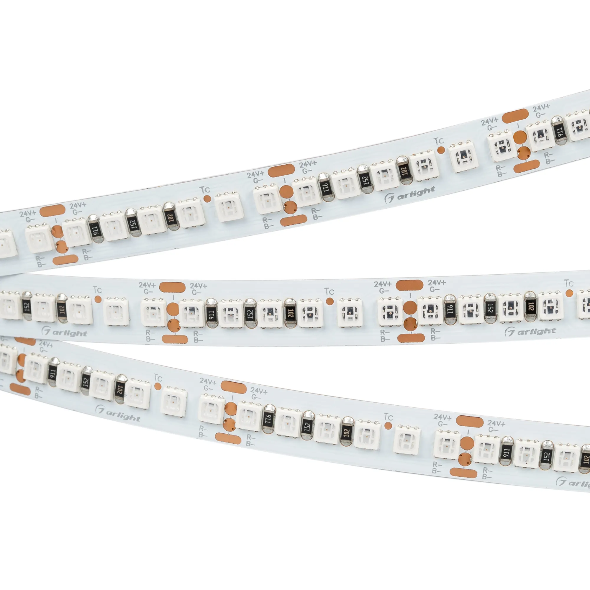 Мультицветная светодиодная лента RT серии G168 шириной 10 мм, мощностью 17.3 Вт/м. Цвет свечения RGB. Напряжение питания 24 В. Светодиоды SMD 3838, 168 шт/м. Минимальный отрезок 35.71 мм (6 светодиодов). Трехканальная лента с 4 проводами для подключения, управляется RGB-контроллером. Плотная установка светодиодов позволяет скрыть видимость точек светодиодов в профиле небольшой глубины с матовым экраном. Применяется для оформления декоративной подсветки рекламных конструкций и витрин, мультицветной подсветки ниш, создания цветных световых линий с изменяемым цветом свечения.