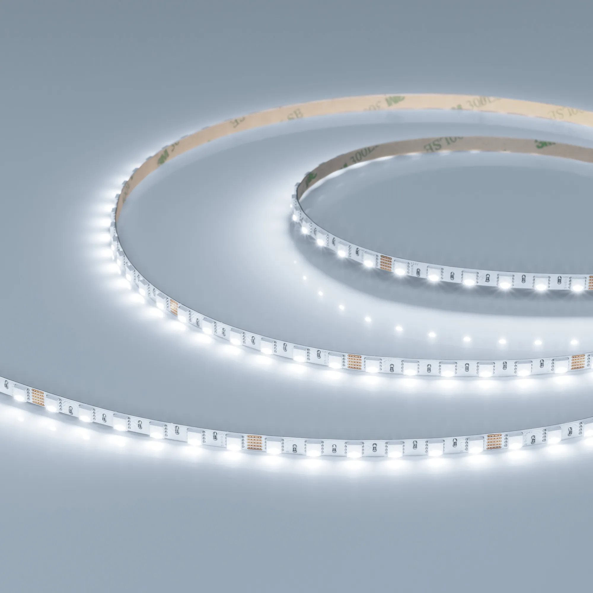 Светодиодная лента RT серии H96 с узкой платой 5 мм. Светодиоды SMD 4040, 96 шт/м, цвет свечения RGBW, белый 6000K, четыре кристалла в одном корпусе. Четырехканальная лента с пятью проводами для подключения, управляется RGBW контроллером. Применяется для декоративной интерьерной подсветки ниш, витрин, мебели, стеклянных полок. Узкая плата 5 мм позволяет устанавливать ленту в тонкий паз, создавая тонкие световые линии. Обязательна установка на алюминиевый профиль.
