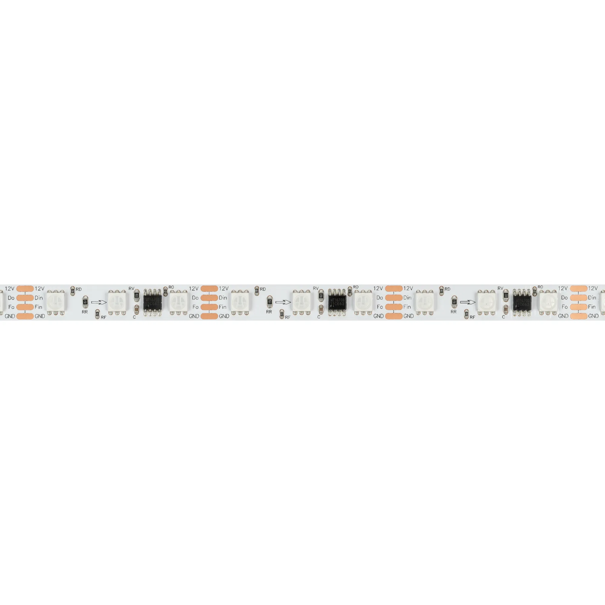 Открытая лента SPI «Бегущий огонь» с микросхемой MT1808A. Управление через внешний контроллер (совместимый c микросхемами TM1812, UCS1903, GS8206, WS2812–2815) по стандартному протоколу SPI. Функция обхода битого пикселя (BPT), битый пиксель не влияет на передачу сигнала далее по ленте. Используется для воспроизведения многоцветных световых эффектов различной сложности: от простейшего эффекта «Бегущий огонь» до воспроизведения динамических изображений на мультимедийных экранах. Применяется для создания рекламных вывесок, оформление витрин, помещений для дискотек, ресторанов, театрализованных шоу.