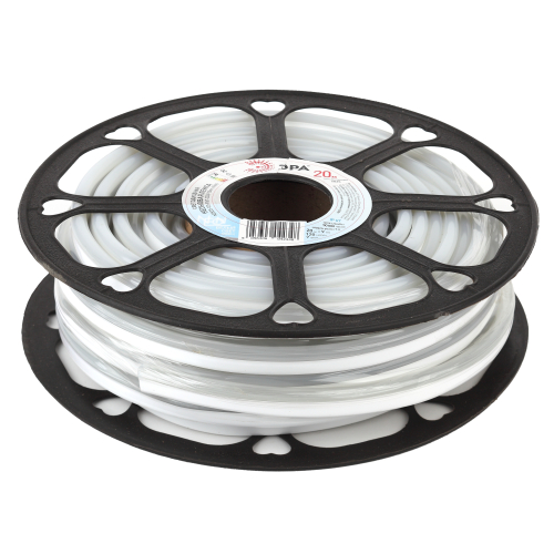 ЭРА Светодиодная неоновая лента N2835-120-IP67-220V-20m-6500 (1/60) со степенью защиты от пыли и влаги IP67 - современный способ создания оригинального освещения помещений и зданий, как внутри, так и снаружи.. Cветодиодная лента устанавливается при помощи крепежей (монтажных скоб), монтаж на двусторонний скотч исключён. Торцы ленты необходимо закрывать заглушками. Гибкая LED-лента ЭРА позволяет устанавливать подсветку на уличные конструкции для освещения и привлечения внимания к объектам. Лента неоновая от торговой марки ЭРА поставляется в удобных катушках. Рабочее напряжение ленты составляет 220В, а мощность равна 7 Вт/м. Светодиодная лента обладает световым потоком 145 Лм/м, и цветом свечения - холодный белый (6500 K)