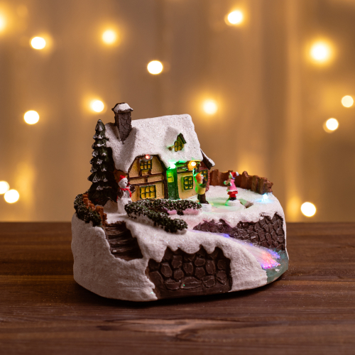 Светодиодная новогодняя фигура ЭРА EFIS-S02 композиция Деревня мультиколор 3*АА 16*13*12 см