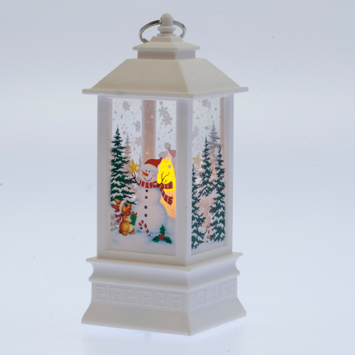 Настольный праздничный светильник ЭРА EGNDS-06 "Снеговик" (арт. Б0051940) высотой 20 см создаст дома невероятную новогоднюю атмосферу! Корпус светильника-фонаря выполнен из белого ПВХ, имеет на стеклах симпатичный рисунок снеговика в зимнем снежном лесу, а внутри расположена светодиодная лампочка с теплым светом, имитирующая свечу. Фонарик работает от 3 батареек ААА, степень защиты IP20 (рекомендуется использовать в помещениях). Этот декоративный светильник станет украшением кухни или гостиной, а еще его можно использовать в спальне в качестве ночника. Светильник станет оригинальным подарком на Новый год или Рождество, который понравится как взрослым, так и детям. Новогодний декор для дома всегда дарит ощущение праздника!