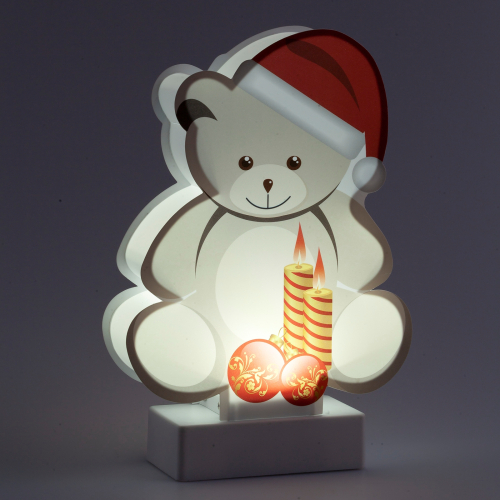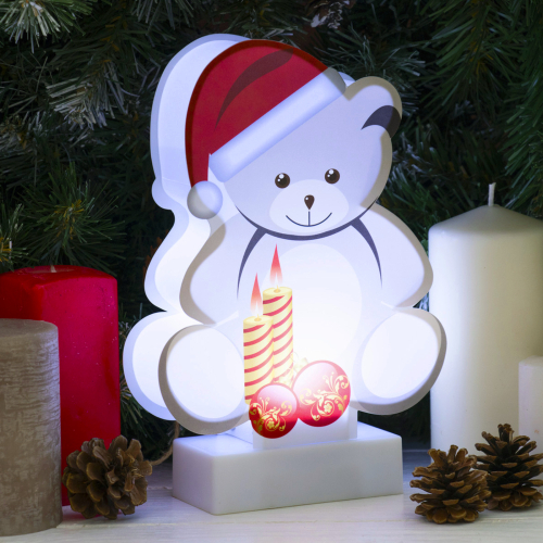 Фигура светодиодная новогодняя ЭРА EGNDS-07 "Мишка" (арт. Б0051931) высотой 24 см с рассеянным холодным светом подарит Вашему дому уютную атмосферу. Этот декоративный светильник украсит любую комнату, включая спальню: приглушенный свет позволяет использовать его в качестве ночника в детской. Светильник работает от 3 батареек AA и имеет класс защиты IP20 (рекомендуется использовать внутри помещений). Настольный зимний светильник в виде мишки в колпаке с новогодними шариками и свечами - это отличный подарок на Новый год и Рождество, особенно для ребенка. Такой новогодний декор для дома всегда создает чудесное праздничное настроение!