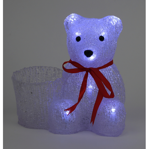 Новогодняя светодиодная фигура ЭРА "Медвежонок с корзинкой" (арт. Б0047974) для создания праздничной атмосферы и декорирования интерьера. Работает от 3 мизинчиковых батареек, что даёт возможность украшать пространство без привязки к наличию подходящих розеток. Изготовлена из акрила - крепче и устойчивее многих аналогов. Будет надёжно стоять без дополнительных креплений. Отличается морозостойкостью. LED-фигура представляет собой северного медвежонка с корзинкой, светится холодным белым светом. Дизайн фигуры идеально подходит к зимним праздникам. В корзинку можно положить небольшие сувениры, конфеты или новогодний декор. Размеры фигуры: 21 х 15 х 19 см. Свет создают 10 ярких и экономичных светодиодов, которые не перегреваются даже при длительной работе без перерывов. Новогодняя LED-фигура - простой и быстрый способ создать праздничное настроение, украсить дом, офис, общественное пространство.