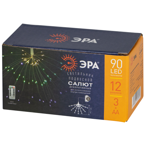 Светодиодная новогодняя гирлянда ЭРА ENIS-90M подвесной светильник Салют мультиколор 90 led 2*AA