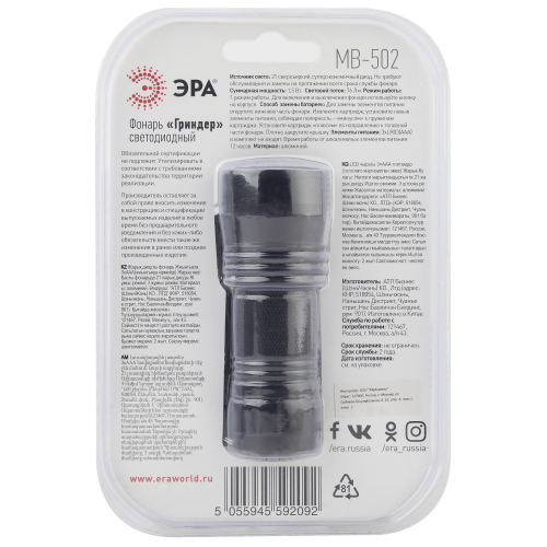Металлический светодиодный фонарь для ежедневного использования. Это простой и надёжный фонарь, без лишних опций, зато очень практичный и простой. Фонарь обладает компактными размерами, его без проблем можно брать с собой, положить в сумочку или бардачок в машине. Корпус фонаря выполнен из анодированного алюминия, а значит он износостойкий и прочный. Такой корпус защищает фонарь от механических повреждений, а также гарантирует, что при случайном падении фонарь продолжить работать. Для большего комфорта фонарь комплектуется ремешком на запястье. Помимо надёжности и прочности, очевидно, что для фонаря главным качеством является качество света. Фонарь оборудован 21 ярким светодиодом, которые светят ярким белым светом. Такие светодиоды очень надёжны и имеют долгий срок службы. Фонарь выдаёт средний угол пучка, что подходит для большинства бытовых задач. В случае, когда необходим дополнительный источник света, фонарь MB-502 станет отличным инструментом. Он выдаёт мощный луч света на 53 метра освещения. Диоды в фонаре мощностью 1,5Вт. Фонарь работает от трёх батареек ААА и светит без порыва 12 часов.