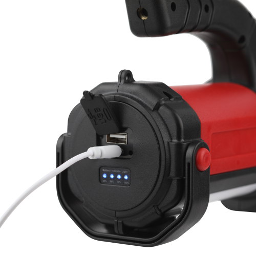 В комплекте microUSB-кабель для подзарядки, имеется индикатор уровня заряда. При полном заряде работает непрерывно 6 часов. Благодаря емкому литиевому аккумулятору (2400 мАч) фонарь долго светит и мало весит. Удобно брать с собой, переносить, подвешивать и устанавливать на поверхность в качестве светильника. Идеальный вариант для кемпинга!