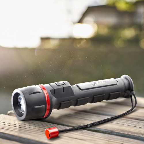 Универсальный светодиодный фонарь R2AA практичный и надёжный инструмент для ежедневного использования. Фонарь очень простой, без лишних опций, но зато безукоризненно выполняет свою главную и единственную функцию - обеспечивать дополнительным ярким источником света. В фонаре продумана каждая деталь, от эргономики ручки до качества светодиодов.Фонарь выполнен из резины, это делает корпус защищённым от случайных падений и царапин. Также резина защищает от попадания влаги внутрь корпуса, например, во время дождя. На самой ручке предусмотрены противоскользящие насечки. Фонарь крепко и удобно лежит в руке, дополнительно можно зафиксировать ремешком на запястье. Фонарь оснащён тремя светодиодами, которые светят ровным и ярким белым светом, без отлива в синеву. Дальность луча составляет 25 метров, мощность - 0,7 Вт. Этого вполне достаточно для подсветки тёмной дороги, для рыбалки или похода, а также для дополнительного освещения в городских условиях, в квартире или гараже. Фонарь питается от двух батареек.