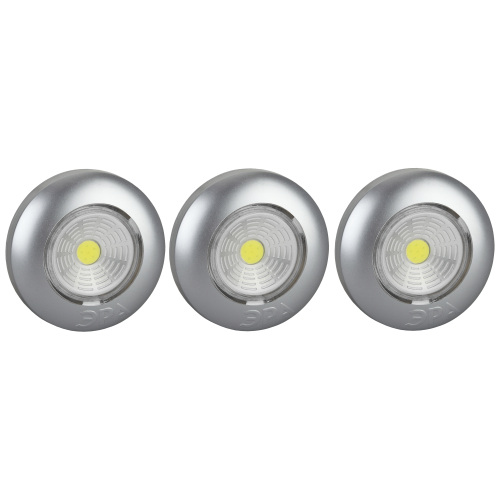Фонарь пушлайт "Аврора" удобный инструмент для аварийного или интерьерного освещения. Фонарь светит ярким белым светом, оснащён 4 светодиодами последнего поколения. Такие светодиоды не тускнеют со временем и не требуют замены. Экологичный ударопрочный пластик выполнен в спокойных классических цветах, которые впишутся в любой интерьер.Пушлайт включается по требованию, одним нажатием руки. Очень простой в использовании, достаточно убрать стикер и приклеить фонарь в нужное место, в шкаф, в кладовку, в гараж, в прихожую или в любое другое место. Фонарь работает от батареек, чтобы их сменить отклеивать фонарь не нужно, достаточно лёгким движением открутить корпус.Фонарь не требует никаких дополнительных условий, просто включите, когда необходимо освещение и всё. Дальность луча составляет 5 метров. Фонарь выполнен в серебристом цвете. Это простой многофункциональный светильник, который не требует никаких проводов или розеток. В наборе три фонаря с удобной установкой и энергосберегающей конструкцией, это действительно набор универсальных светодиодных фонарей. Фонарь может использоваться не только как подсветка или аварийный свет, но и как ночной светильник, поскольку светит ровным ярким светом с широким углом освещения длительное время.