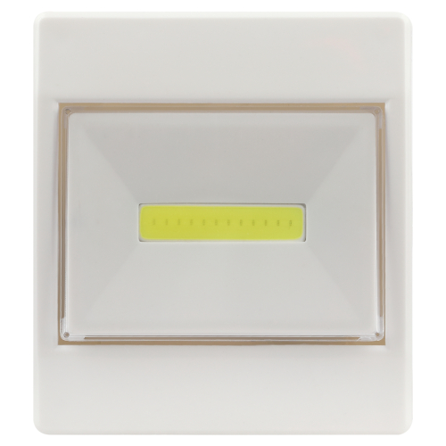 ТРОФИ SB-102 - светодиодный фонарь-подсветка в форме выключателя. Прост в установке и удобен в применении. Два типа крепления - ушко для подвешивания и двойная липучка для монтажа без сверления. Работает от 3 мизинчиковых батареек (3 х ААА). Дает возможность организовать яркую подсветку в любом месте - без привязки к электросети. Включается нажатием на корпус - как обычный выключатель. На кнопке "выключателя" расположена светодиодная плата - именно она создает качественный заливающий свет. Применена новейшая LED-технология - сверхъяркие и суперэкономичные светодиоды COB. Бытовой фонарь-подстветка в аккуратном лаконичном корпусе базового белого цвета универсален для любого интерьера.