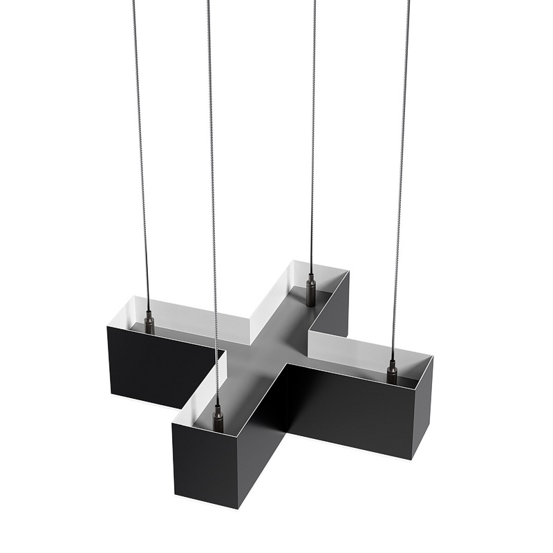Корпус светильника в форме креста может быть выполнен в черном, белом и сером цветах. Цветовая температура на выбор: теплый цвет (3000К), нейтральный (4000К) или холодный (6500К). Материал корпуса металл, размеры на выбор заказчика. Тип крепления: подвесной.