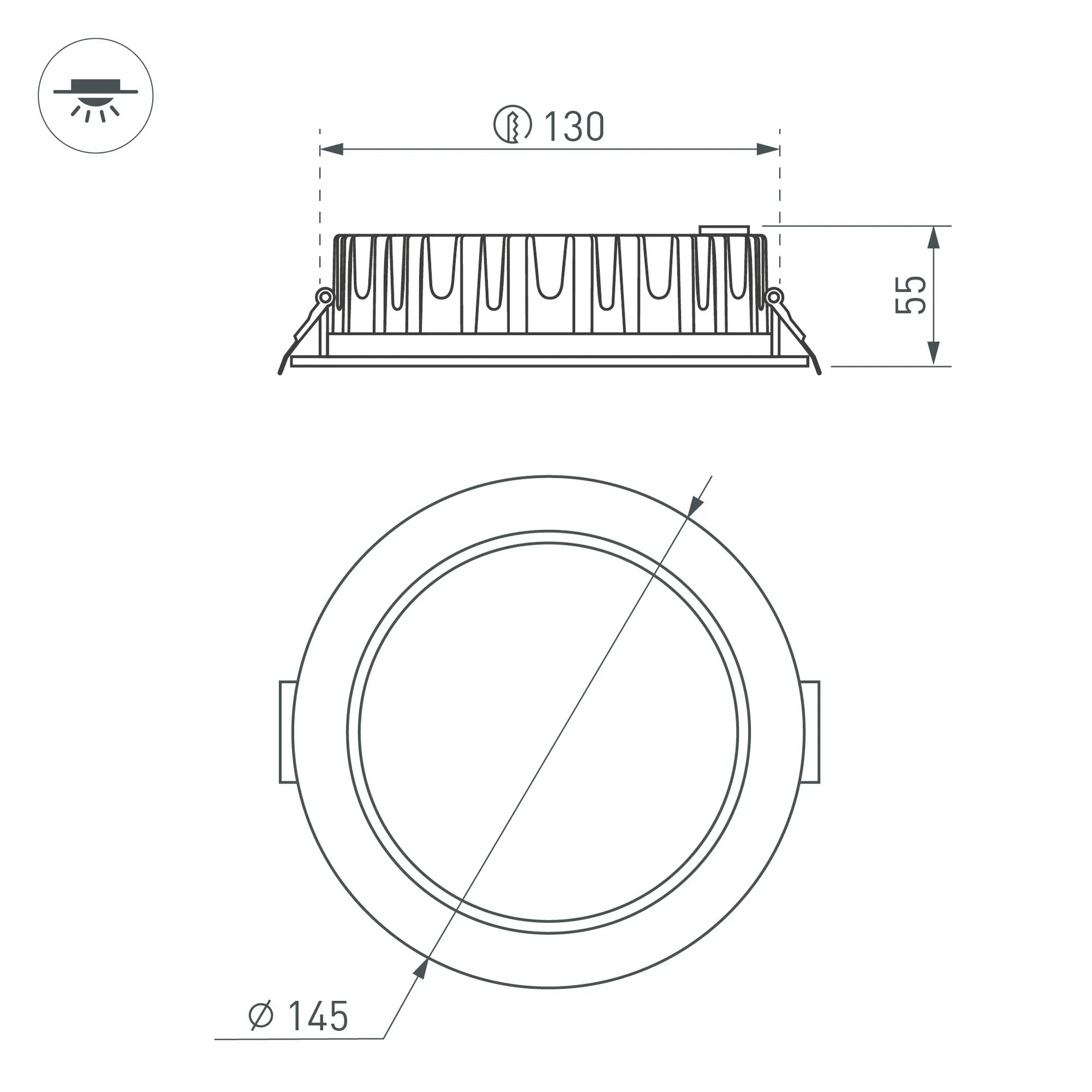 Встраиваемый круглый светильник c индексом CRI>80 обеспечивает отличную цветопередачу и равномерное освещение без мерцания. Особая конфигурация алюминиевого корпуса позволяет эффективно отводить тепло и продлевает срок службы светодиодов. Белый цвет корпуса будет гармонично смотреться в любом интерьере. Уникальный рассеиватель придает модели оригинальный внешний вид. Светильник с широким углом рассеивания 110 градусов и эффективностью 90 лм/Вт обеспечивает качественный свет. Светильник легко устанавливается с помощью пружин в монтажное отверстие. В комплекте поставляется драйвер, что позволяет безопасно и быстро подключать светильник напрямую к сети переменного тока 230 В. Корпус с защитой на уровне IP44 предотвращает попадание пыли, влаги, а также брызг воды. Имеется возможность диммирования при замене драйвера. Предназначен для основного и локального освещения в жилых, коммерческих и общественных помещениях.