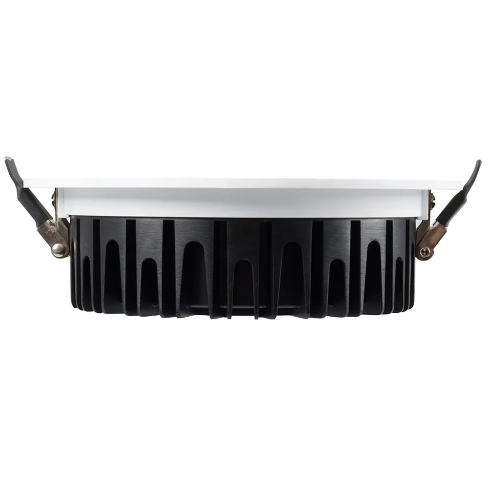 Встраиваемый круглый светильник c индексом CRI>80 обеспечивает отличную цветопередачу и равномерное освещение без мерцания. Особая конфигурация алюминиевого корпуса позволяет эффективно отводить тепло и продлевает срок службы светодиодов. Белый цвет корпуса будет гармонично смотреться в любом интерьере. Уникальный рассеиватель придает модели оригинальный внешний вид. Светильник с широким углом рассеивания 110 градусов и эффективностью 90 лм/Вт обеспечивает качественный свет. Светильник легко устанавливается с помощью пружин в монтажное отверстие. В комплекте поставляется драйвер, что позволяет безопасно и быстро подключать светильник напрямую к сети переменного тока 230 В. Корпус с защитой на уровне IP44 предотвращает попадание пыли, влаги, а также брызг воды. Имеется возможность диммирования при замене драйвера. Предназначен для основного и локального освещения в жилых, коммерческих и общественных помещениях.