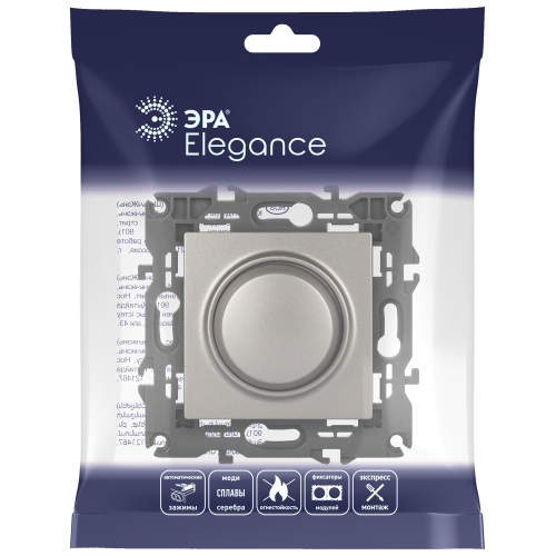 Светорегулятор (диммер) поворотно-нажимной, 400ВА 230В, серии Эра Elegance 14-4101-16 цвет титан.