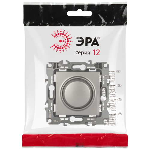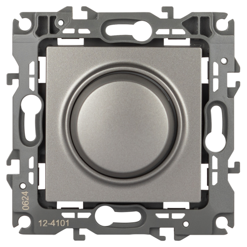 Светорегулятор поворотно-нажимной серии Эра 12 скрытой установки механизм цвет титан 12-4101-16. Номинальные хар-ки 400ВА 230В. Сделан из поликарбоната. Монтаж в подрозетник производится и на лапки, и на винты. Рамки приобретаются отдельно.