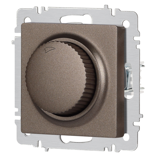 Светорегулятор (диммер) поворотный серии Intro Accent скрытой установки механизм цвет бронза 6-401-08. Номинальные характеристики 600Вт 250В IP20. Выполнен из негорючего термопласта. Монтаж в подрозетник производится и на лапки, и на винты. Рамка приобретается отдельно. В серии представлены рамки до 5 постов: на 1 пост - 6-501-хх, на 2 поста - 6-502-хх, на 3 поста - 6-503-хх, на 6 поста - 4-504-хх, на 5 постов - 6-505-хх (где хх - цветовой код: 01 - белый, 01М - матовый белый, 02 - слоновая кость, 03 - алюминий, 04 - шампань, 05 - антрацит, 06 - перламутр, 07 - графит, 08 - бронза, 09 - титан, 10 - венге, 11 - сосна)