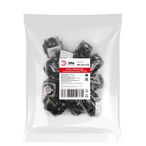 - Каждое изделие обладает индивидуальным штрих-кодом, на котором указаны модель зажима и диапазон сечений кабеля «магистраль–ответвление».