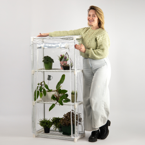 GREEN APPLE представляет уникальное решение для российского рынка - мини-парник для успешного выращивания растений в домашних условиях в любой сезон. Теплица GA-House-4x-frame - это простая в сборке и очень компактная теплица из металла, это надёжная конструкция, которая поможет вам вырастить богатый урожай овощей и зелени. Теплица GA-House-4x-frame отлично поместится на балконе, у окна или в любом другом месте квартиры, дома. Благодаря своей трёхъярусной системе, она предоставляет достаточно места для растений и позволяет эффективно использовать пространство вашего дома. Её габариты: 590x300x1250 мм. Материал: каркас из стальной трубы (диаметр 16 мм), покрытой порошковой краской, которая защищает от коррозии; фитинги армированные уф-стойкие. Покрытие: сотовый поликарбонат, обеспечивающий отличную теплоизоляцию и пропускающий достаточное количество света. Высота полки - 40 см, максимальная нагрузка на полку – 10 кг, максимальная нагрузка на теплицу – 30кг. Качественный и надёжный металлокаркас дополняет прочный прозрачный кожух с удобной молнией. Кожух защищает растения от сквозняков, создаёт внутри теплицы необходимый для быстрого развития растений микроклимат. Благодаря молнии кожух легко открывается для проветривания, полива, замены ящиков или горшков. Удобство в использовании: конструкция легко собирается и разбирается, что позволяет быстро подготовить участок к посадке растений весной и убрать их осенью. Она подойдёт и любителям, и профессионалам.