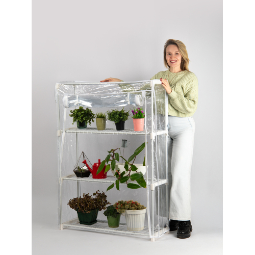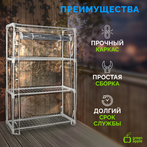 GREEN APPLE представляет уникальное решение для российского рынка - мини-парник для успешного выращивания растений в домашних условиях в любой сезон. Теплица GA-House-4x-frame - это простая в сборке и очень компактная теплица из металла, это надёжная конструкция, которая поможет вам вырастить богатый урожай овощей и зелени. Теплица GA-House-4x-frame отлично поместится на балконе, у окна или в любом другом месте квартиры, дома. Благодаря своей трёхъярусной системе, она предоставляет достаточно места для растений и позволяет эффективно использовать пространство вашего дома. Её габариты: 900x300x1250 мм. Материал: каркас из стальной трубы (диаметр 16 мм), покрытой порошковой краской, которая защищает от коррозии; фитинги армированные уф-стойкие. Покрытие: сотовый поликарбонат, обеспечивающий отличную теплоизоляцию и пропускающий достаточное количество света. Высота полки - 40 см, максимальная нагрузка на полку – 10 кг, максимальная нагрузка на теплицу – 30 кг. Качественный и надёжный металлокаркас дополняет прочный прозрачный кожух с удобной молнией. Кожух защищает растения от сквозняков, создаёт внутри теплицы необходимый для быстрого развития растений микроклимат. Благодаря молнии кожух легко открывается для проветривания, полива, замены ящиков или горшков. Удобство в использовании: конструкция легко собирается и разбирается, что позволяет быстро подготовить участок к посадке. Она станет незаменимым помощником как для любителей садоводства, так и для профессионалов.