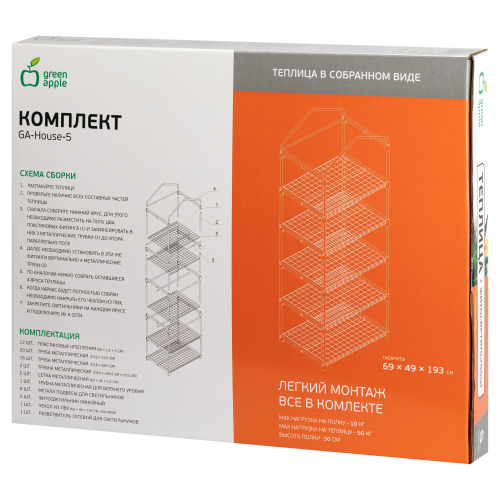 GREEN APPLE представляет уникальное решение для российского рынка - комплект для успешного выращивания растений в домашних условиях в любой сезон. GA-House -5 - это простая в сборке и очень компактная теплица из металла + 5 линейных фитосветильников для каждого яруса.
