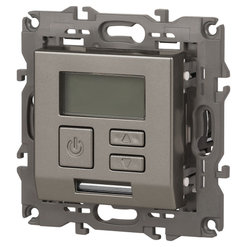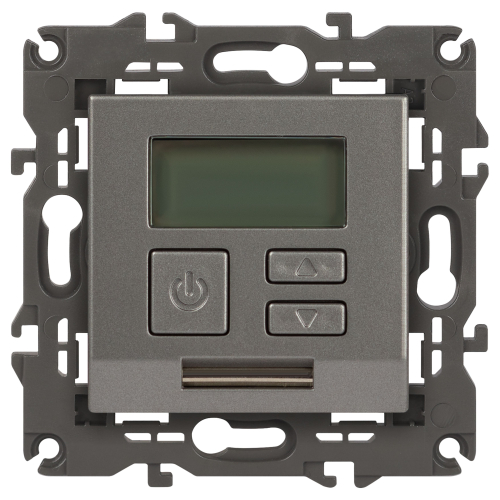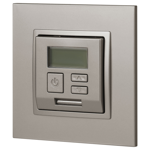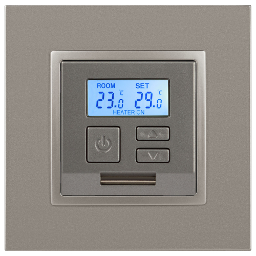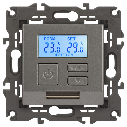 Терморегулятор теплый пол / отопление электронный серии Эра Elegance цвет титан 14-4111-16. Характеристики 16А 250В. Датчик температуры пола в комплекте. Рамки приобретаются отдельно.