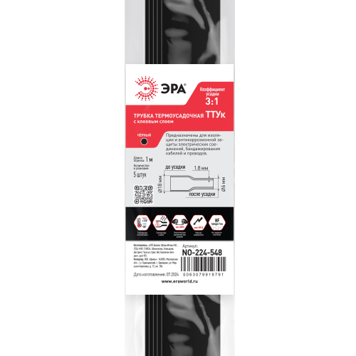 - Материал: полиолефин, внутренняя поверхность трубок покрыта слоем термоплавкого клея