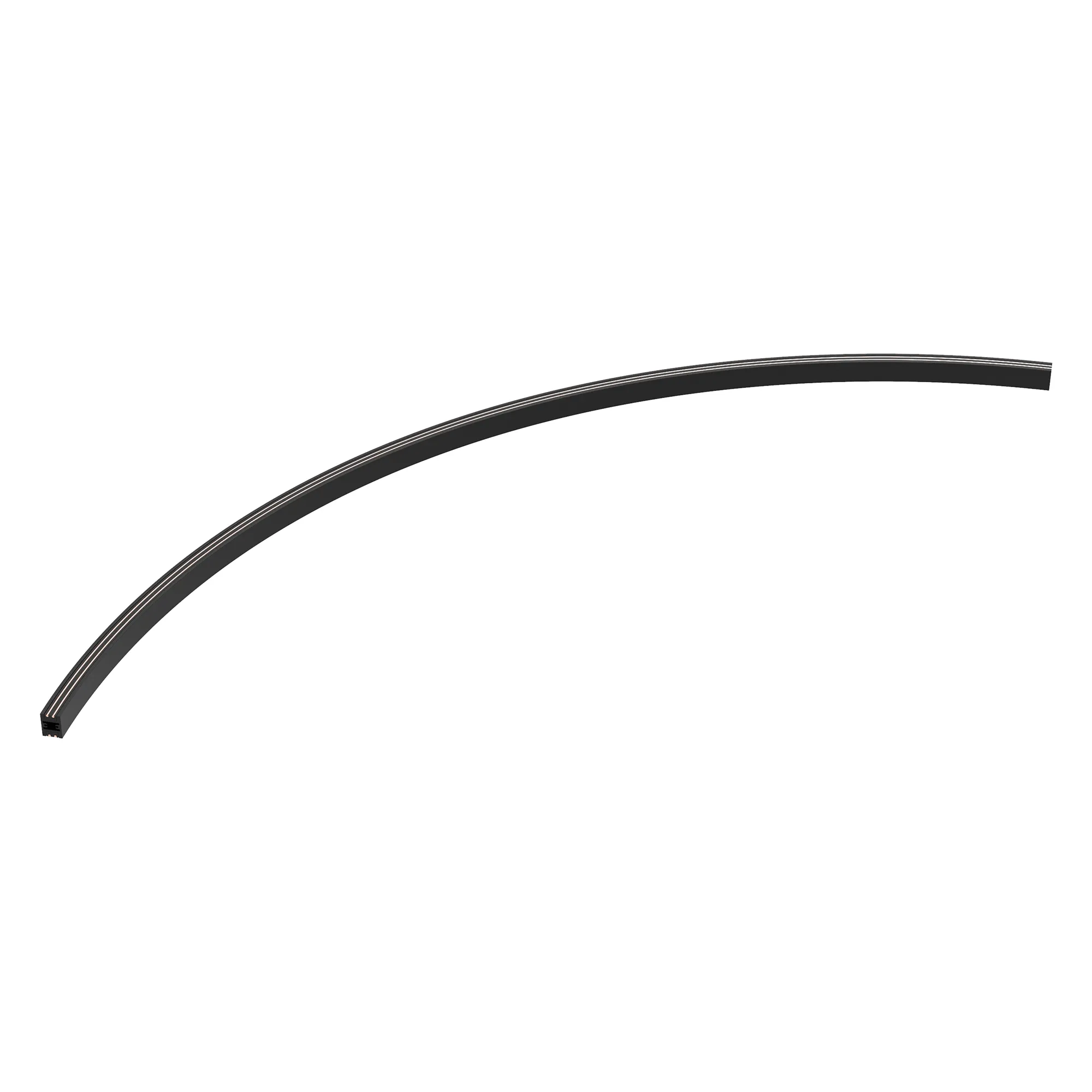 Трек TRACK-ARC-A-1722-1800, 1/4 круга диаметром 1800 мм. В сочетании с аксессуарами и светильниками предназначен для создания простых и сложных (протяженных, многоуровневых) осветительных конструкций. Монтируется подвесным способом. Размер: 1273 x 276 x 22 мм. Шинопровод рассчитан на работу с безопасным напряжением DC48В. Изготавливается из алюминия, окрашенного в черный цвет. Возможна резка в произвольном месте. Аксессуары, светильники и источники питания приобретаются отдельно.