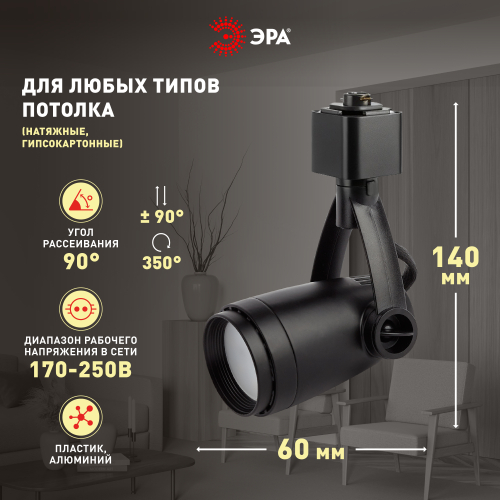 Трековый светильник TR12-GU10 лаконичного черного цвета и стильной зауженной формы от компании Эра необходим при создании акцентного освещения. Он выделит конкретный объект, создаст стильную подсветку. Подобные светильники имеют особый механизм, который позволяет регулировать угол наклона светильника, изменяя восприятие пространства в целом. Трековые светильники выполняют несколько функций: в магазинах они направляют потенциального покупателя к конкретному товару, в офисах разграничивают пространство. Источником света является лампа с цоколем GU10, что делает светильник максимально универсальным и позволяет подобрать необходимую мощность, цветовую температуру и угол рассеивания. Светильник отлично впишется в любой дизайн, создаст качественные акценты. Стилистическое разнообразие моделей трековых светильников Эра позволит подобрать наиболее подходящий вариант для любого помещения.