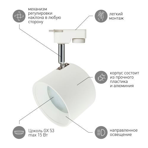 Освещение > Трековые светильники > Однофазные светильники под лампу