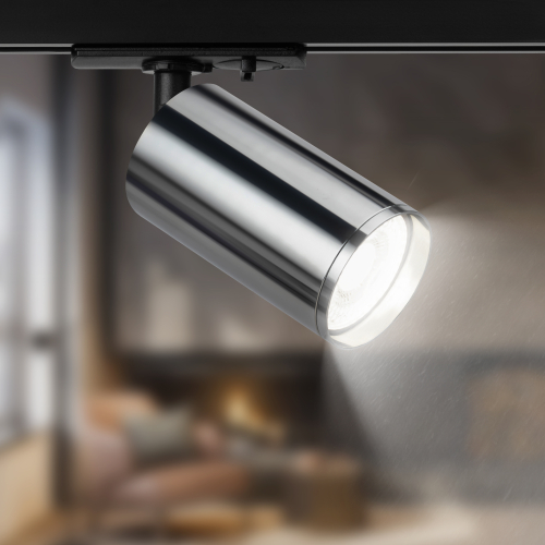Однофазный трековый светильник под лампу GU10. Особенностью модели является современный утопленный трековый адаптер, который скрыт в шинопроводе и не отвлекает на себя внимание. Также модель комплектуется "Г" образным держателем, который визуально приближает светильник к шинопроводу, делая его эстетически более привлекательным. На тыльной части светильник имеет вентиляционные прорези для отвода горячего воздуха. Максимальная мощность лампы не должна превышать 15W.