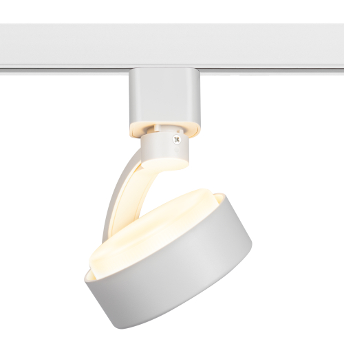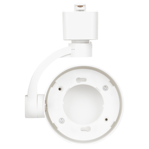 Однофазный трековый светильник под лампу GX53. Материал корпуса - негорючий пластик. Конструкцией светильника предсмотрена возможность настройки направления света в любом направлении. Светильники превосходно смотрятся группами. Рассеиватель лампы в светильниках остается снаружи светового прибора, благодаря этому модель отлично подойдет для создания основного заливающего освещения.