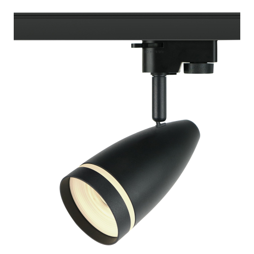 Однофазный трековый светильник под лампу с цоколем GU10. Светильник выполнен из алюминия и пластика. На передней части плафона, выполненного в виде конуса, расположено декоративное акриловое кольцо, которое наполняется светом и придает светильнику превосходный внешний вид.