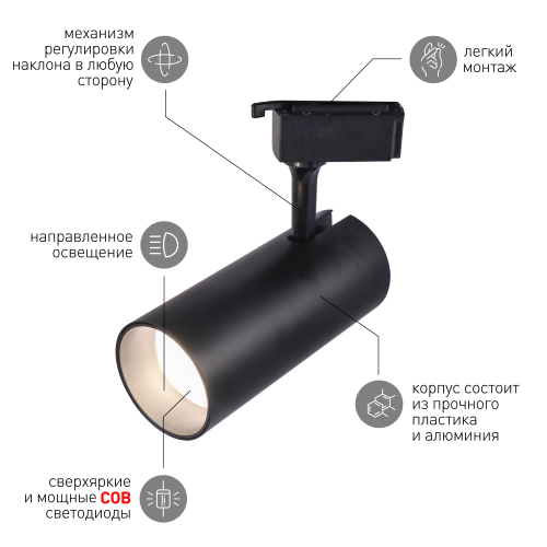 Однофазные трековые светильники от компании Эра. Модели поставляются в черном и белом цвете корпуса. Угол рассеивания света составляет 24 градуса, цветовая температура 4000К, что соответствует комфортному дневному свету. Светильники отлично подойдут для освещения торговых площадей или создания акцентов в жилых интерьерах, выполненных в современном стиле. Срок службы светодиодов составляет 50000 часов, за их стабильную и длительную работу отвечает современный импульсный драйвер, с защитой от скачков напряжения и высокочастотных помех. Все эти качества делают светильник отличным выбором для вашего проекта.