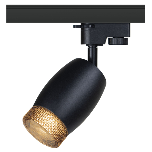 Однофазный трековый светильник под лампу с цоколем GU10. Светильник выполнен из алюминия и пластика. На передней части плафона находится пластиковое кольцо, стилизированное под хрусталь. Во включенном виде данное кольцо наполняется светом и создает превосходный визуальный эффект, а также оно выполняет функцию ограничителя угла рассеивания светового потока, снижая эффект ослепления светом.