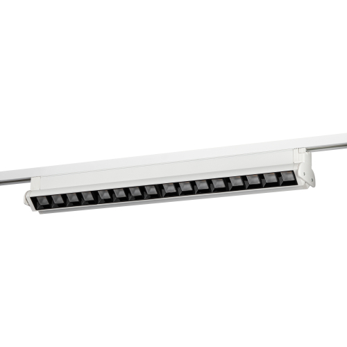 Однофазный светодиодный трековый светильник с направленным светом. В качестве источника света выступают 2 независимых поворотных модуля со встроенными рефлекторами. За счет раздельных рефлекторных модулей, разнесенных по всей длине светильника, он создает широкую полосу плотной засветки, в отличии от классических моделей, создающих цилиндрическое световое пятно. Модель великолепно подойдет для коммерческого освещения. Светильник поставляется в двух цветах: черный и белый, и двух цветовых температурах: 3000К – теплый белый и 4000К – нейтральный белый. (Б0059551-TR54 - 5030 WH, Б0059552-TR54 - 5040 WH, Б0059553-TR54 - 5030 BK, Б0059547-TR54 - 5040 BK)