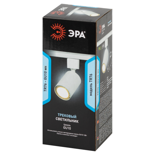Однофазный трековый светильник ЭРА TR76 - GU10 под лампу GU10. Особенностью модели является механический прямоугольный трековый адаптер, который дает возможность прочно закрепить светильник в шинопровод. Свеетильник имеет минималистичный и универсальный дизайн для любых интерьеров. На тыльной части светильника расположены вентиляционные прорези для отвода горячего воздуха. Максимальная мощность лампы не должна превышать 15W. Лампа в комплект не входит.