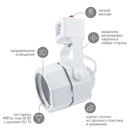 Освещение > Трековые светильники > Однофазные светильники под лампу