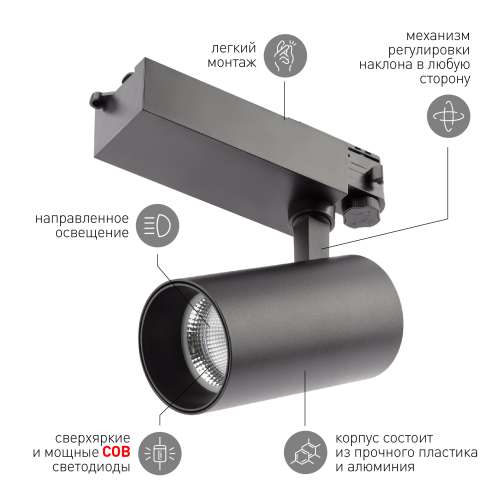 Серия трехфазных трековых светильников от компании Эра. Модель черного цвета и цветовой температуры 4000К( нейтральный белый), мощностью 30 ватт. Угол рассеивания света составляет 36 градусов, что является золотым стандартом для трекового освещения. Светильник имеет классический, минималистичный дизайн, который позволяет его использовать как в проектах освещения комерческих площадей, так и в современных интерьерах. Инженеры компании Эра создавая модель STR-30 использовали электронные компоненты высокого качества, что гарантирует долгую и бесперебойную работу. Светильник STR-30, это симбиоз технологичности, надежности и разумной цены.
