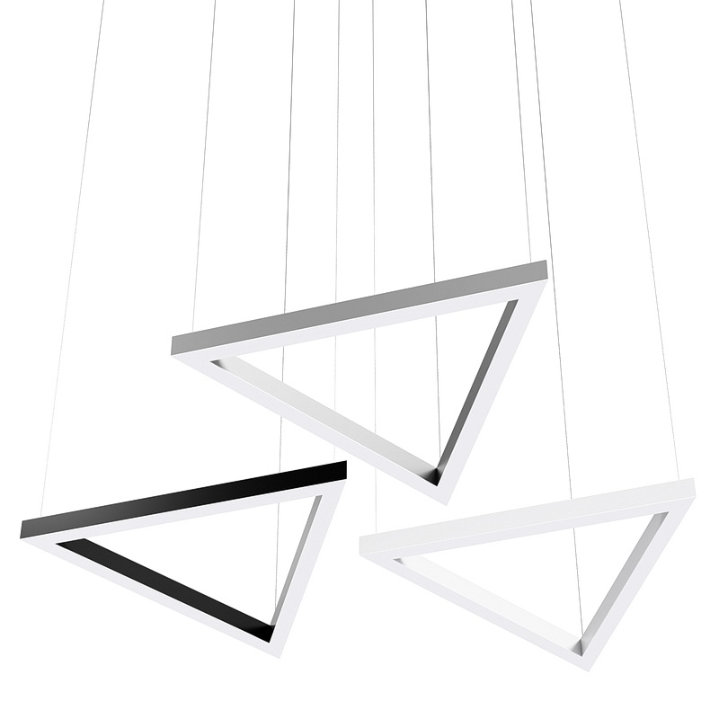 Корпус светильника треугольной формы может быть выполнен в черном, белом и сером цветах. Цветовая температура на выбор: теплый цвет (3000К), нейтральный (4000К) или холодный (6500К). Материал корпуса металл, размеры на выбор заказчика. Тип крепления: подвесной или накладной монтаж.