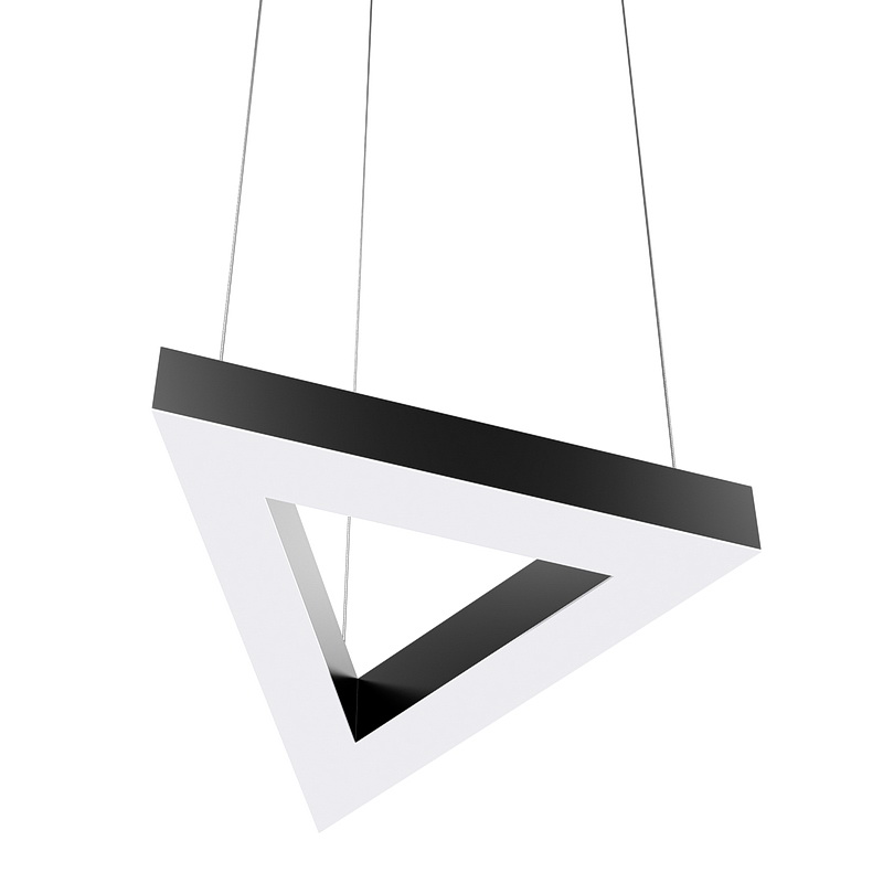 Корпус светильника треугольной формы может быть выполнен в черном, белом и сером цветах. Цветовая температура на выбор: теплый цвет (3000К), нейтральный (4000К) или холодный (6500К). Материал корпуса металл, размеры на выбор заказчика. Тип крепления: подвесной или накладной монтаж.