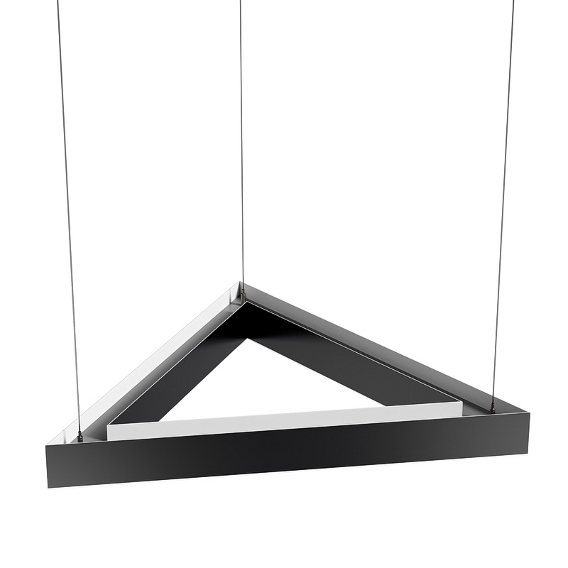 Корпус светильника треугольной формы может быть выполнен в черном, белом и сером цветах. Цветовая температура на выбор: теплый цвет (3000К), нейтральный (4000К) или холодный (6500К). Материал корпуса металл, размеры на выбор заказчика. Тип крепления: подвесной или накладной монтаж.