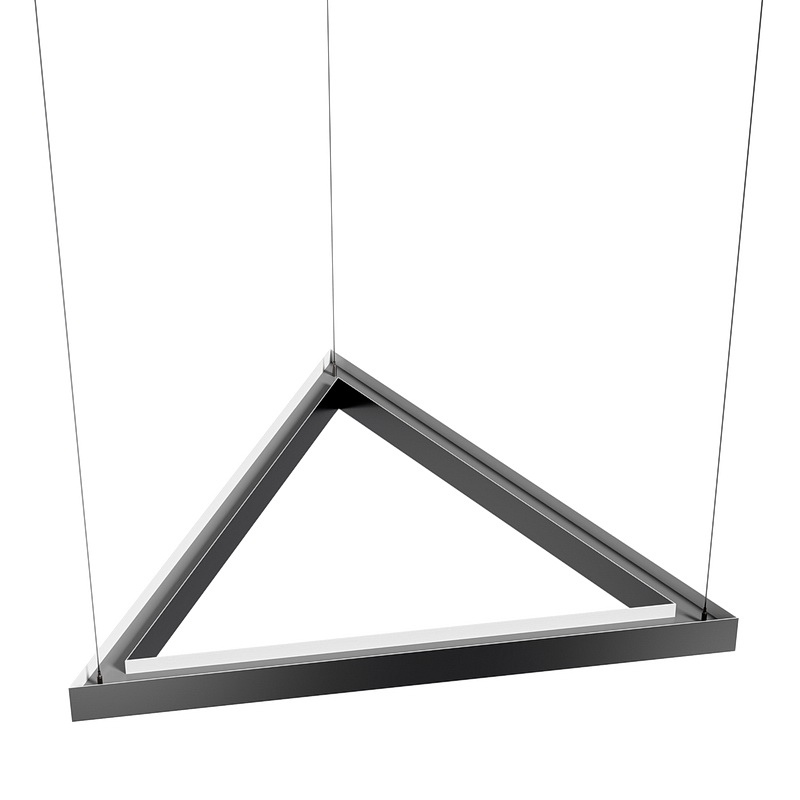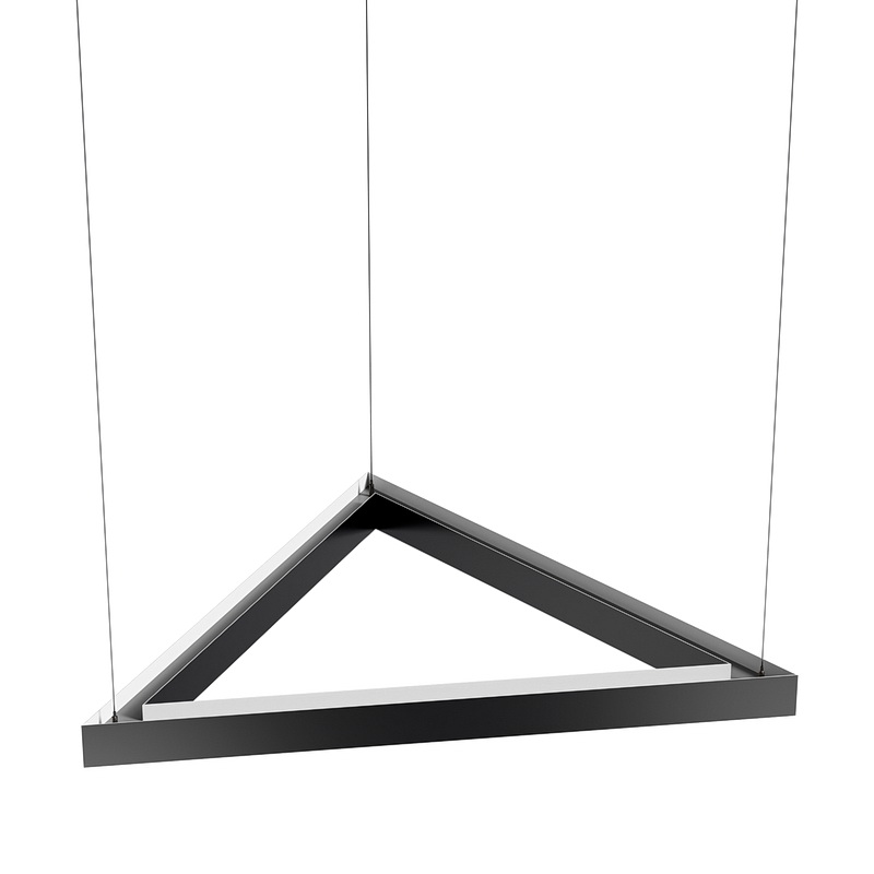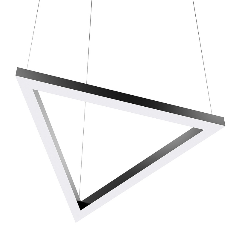 Корпус светильника треугольной формы может быть выполнен в черном, белом и сером цветах. Цветовая температура на выбор: теплый цвет (3000К), нейтральный (4000К) или холодный (6500К). Материал корпуса металл, размеры на выбор заказчика. Тип крепления: подвесной или накладной монтаж.