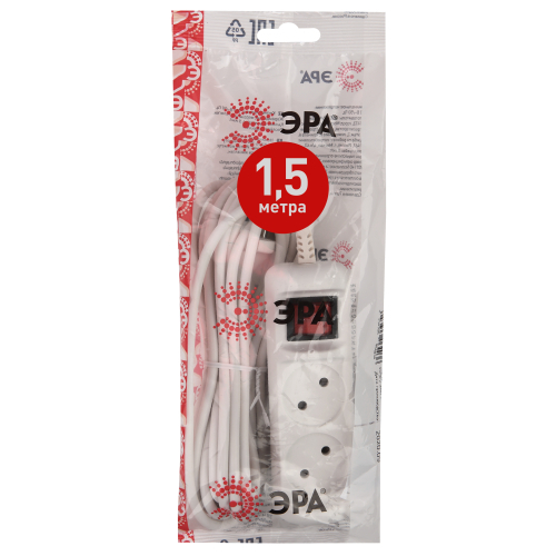 Удлинитель электрический Эра U-2s-1,5m-2x1 без заземления, с выключателем, ПВС, 2x1мм2, 2 розетки, 1,5м. Рассчитан на максимальную мощность 10А/2200 Вт. Удлинитель Эра станет Вашим надежным помощником, если Ваши любимые электроприборы находятся далеко от розеток. Провод в удлинителях Эра сделан из 100% меди, что делает его абсолютно пожаробезопасным. Корпус выполнен из ударопрочного и негорючего пластика (полипропилен). Модель удлинителя на 10А позволяет подключить бытовые приборы общей нагрузкой до 2200Вт. Дизайн удлинителя разработан в России командой Эра Style.
