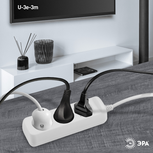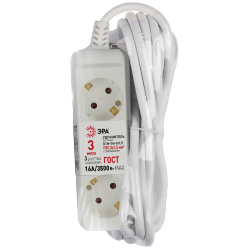 Удлинитель электрический Эра U-3e-3m-3x1,5 с заземлением, 3 розетки, 3м ПВС 3x1,5мм2. Для мощных приборов. Рассчитан на максимальную мощность 16А/3500. Удлинитель Эра станет Вашим надежным помощником, если Ваши любимые электроприборы находятся далеко от розеток.