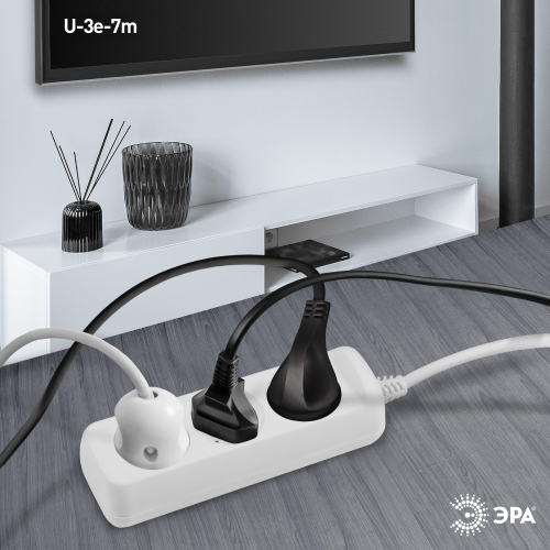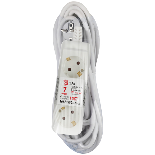 Удлинитель электрический Эра U-3e-7m-3x1,5 с заземлением, 3 розетки, 7м ПВС 3x1,5мм2. Для мощных приборов. Рассчитан на максимальную мощность 16А/3500. Удлинитель Эра станет Вашим надежным помощником, если Ваши любимые электроприборы находятся далеко от розеток.