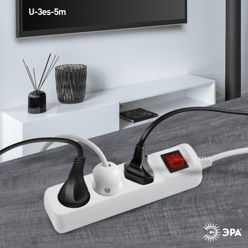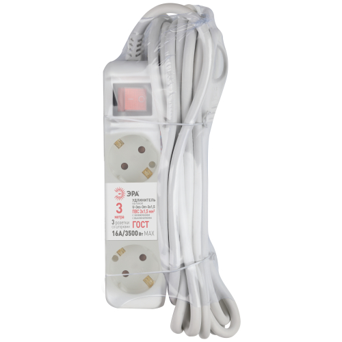 Удлинитель электрический Эра U-3es-5m-3x1,5 с заземлением, с выключателем, 3 розетки, 5м ПВС 3x1,5мм2. Для мощных приборов. Рассчитан на максимальную мощность 16А/3500. Удлинитель Эра станет Вашим надежным помощником, если Ваши любимые электроприборы находятся далеко от розеток.
