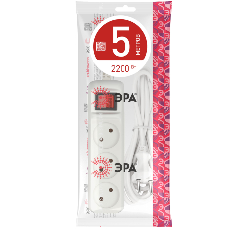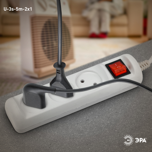 Удлинитель электрический Эра U-3s-5m-2x1 без заземления, с выключателем, ПВС, 2x1мм2, 3 розетки, 5 м. Рассчитан на максимальную мощность 10А/2200 Вт. Удлинитель Эра станет Вашим надежным помощником, если Ваши любимые электроприборы находятся далеко от розеток. Провод в удлинителях Эра сделан из 100% меди, что делает его абсолютно пожаробезопасным. Корпус выполнен из ударопрочного и негорючего пластика (полипропилен). Модель удлинителя на 10А позволяет подключить бытовые приборы общей нагрузкой до 2200Вт. Дизайн удлинителя разработан в России командой Эра Style.