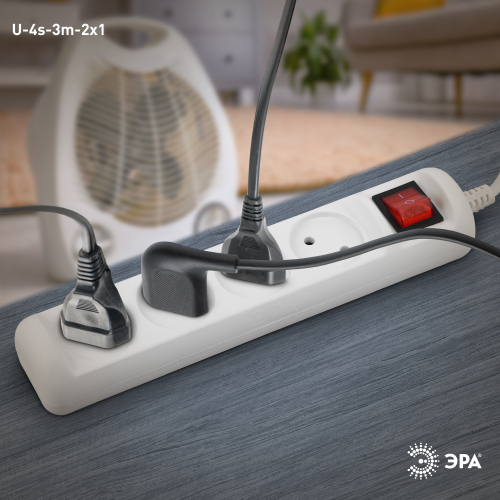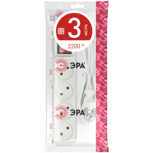 Удлинитель электрический Эра U-4s-3m-2x1 без заземления, с выключателем, ПВС, 2x1мм2, 4 розетки, 3 м. Рассчитан на максимальную мощность 10А/2200 Вт. Удлинитель Эра станет Вашим надежным помощником, если Ваши любимые электроприборы находятся далеко от розеток. Провод в удлинителях Эра сделан из 100% меди, что делает его абсолютно пожаробезопасным. Корпус выполнен из ударопрочного и негорючего пластика (полипропилен). Модель удлинителя на 10А позволяет подключить бытовые приборы общей нагрузкой до 2200Вт. Дизайн удлинителя разработан в России командой Эра Style.