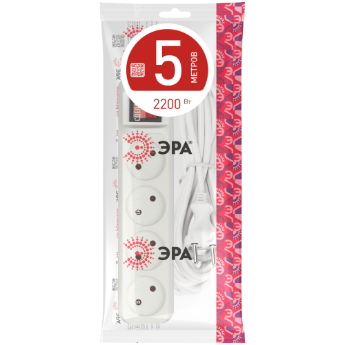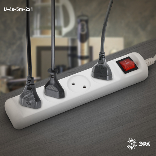 Удлинитель электрический Эра U-4s-5m-2x1 без заземления, с выключателем, ПВС, 2x1мм2, 4 розетки, 5 м. Рассчитан на максимальную мощность 10А/2200 Вт. Удлинитель Эра станет Вашим надежным помощником, если Ваши любимые электроприборы находятся далеко от розеток. Провод в удлинителях Эра сделан из 100% меди, что делает его абсолютно пожаробезопасным. Корпус выполнен из ударопрочного и негорючего пластика (полипропилен). Модель удлинителя на 10А позволяет подключить бытовые приборы общей нагрузкой до 2200Вт. Дизайн удлинителя разработан в России командой Эра Style.