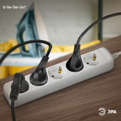 Удлинитель электрический Эра U-5e-3m-3x1 с заземлением, ПВС, 3x1мм2, 5 розеток, 3 м. Рассчитан на максимальную мощность 16А/3500 Вт. Удлинитель Эра станет Вашим надежным помощником, если Ваши любимые электроприборы находятся далеко от розеток. Провод в удлинителях Эра сделан из 100% меди, что делает его абсолютно пожаробезопасным. Корпус выполнен из ударопрочного и негорючего пластика (полипропилен). В моделях с заземлением у вилки есть кольцо для удобного извлечения из розетки. Модель удлинителя на 16А позволяет подключить мощные бытовые приборы общей нагрузкой до 3500Вт. Не бойтесь включить чайник, обогреватель, микроволновку или другие электроприборы. Толстый провод удлинителя Эра гарантирует полную безопасность. Дизайн удлинителя разработан в России командой Эра Style.